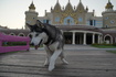 Хочется поспорить с Еленой Минаковой. С осветлением собаки и девушки согласен. Но передняя нога у собаки приподнята как исходнике. а за счёт "пустого" пространства между дворцом, порталом и главными героями хотелось подчеркнуть расстояние между этими объектами.