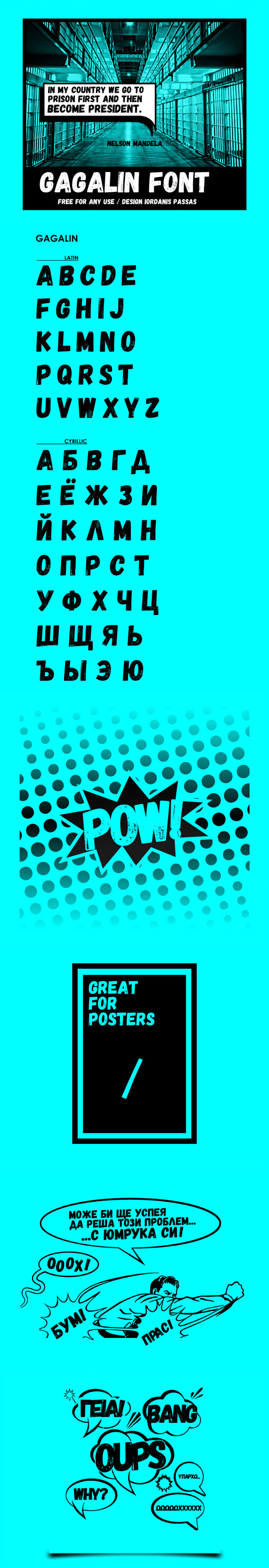 Классный шрифт на русском языке и латинице для создания надписей в стиле комиксов и постеров.