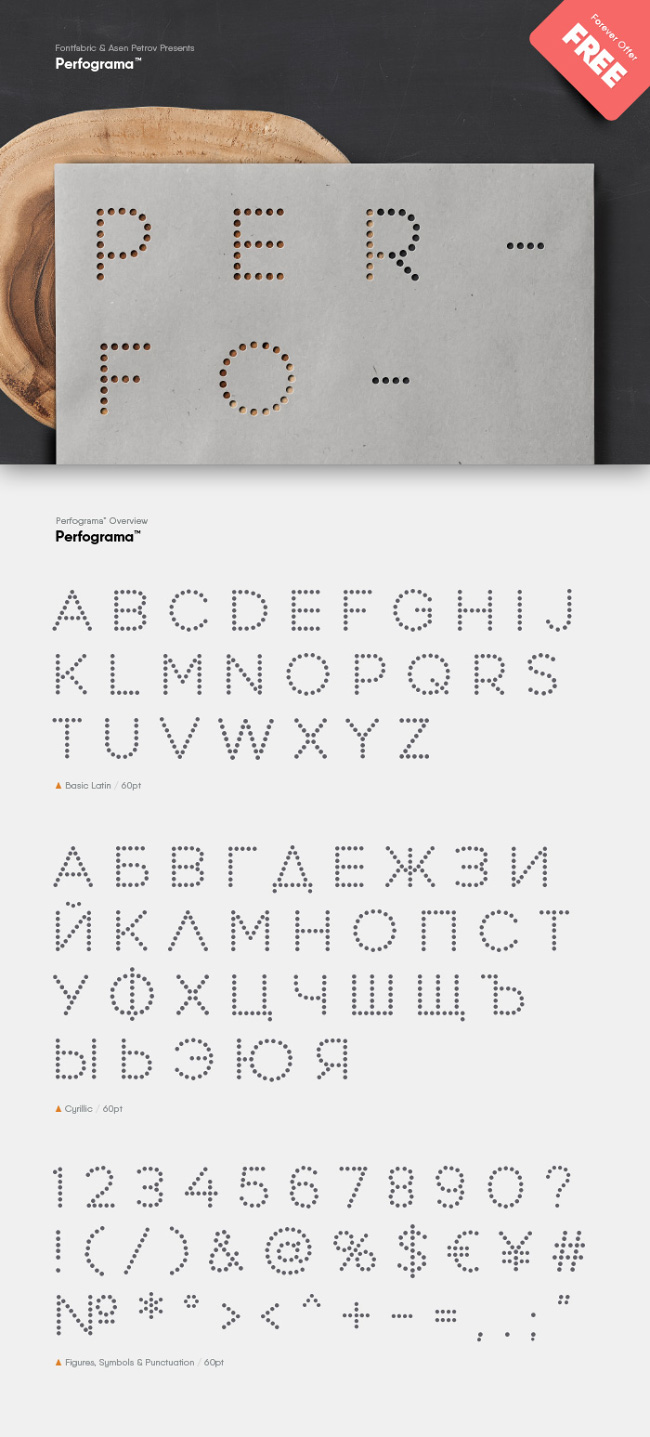 Прикольный шрифт имитирующий буквы из отверстий. Поддерживает кириллицу и латиницу.
