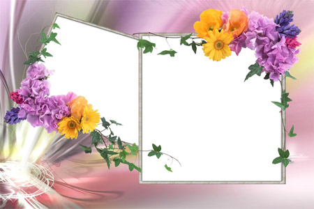 Красивая рамочка с пушистыми фиолетовыми цветами. Формат рамки PSD.
