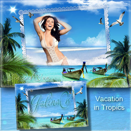 Морская фоторамка с пальмами и чайками в голубом небе для Ваших фото с отдыха.