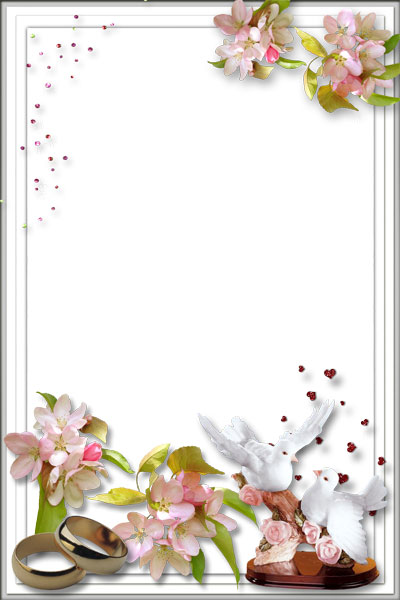 Свадебная рамка с голубями и обручальными кольцами.