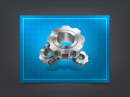 Стильная металлическая иконка настроек с 3D эффектом.