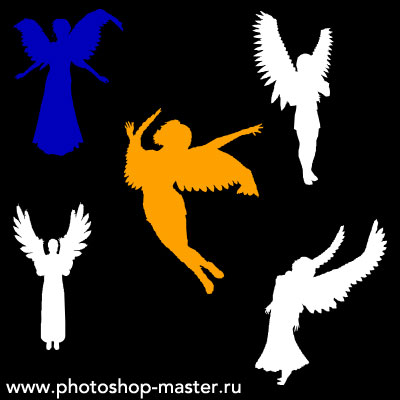 Этот набор фигур для фотошопа включает в себя с десяток разных ангелов. Возможно, Вам когда-нибудь понадобится рисовать рай или что-то подобное, здесь то эти фотошоп-ангелы Вам и пригодятся! Вес - 0,1 Мб.