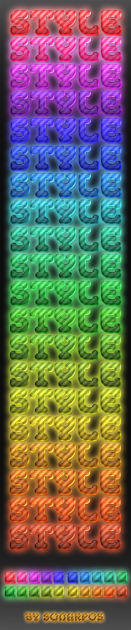 20 разноцветных стилей с эффектом яркого свечения.