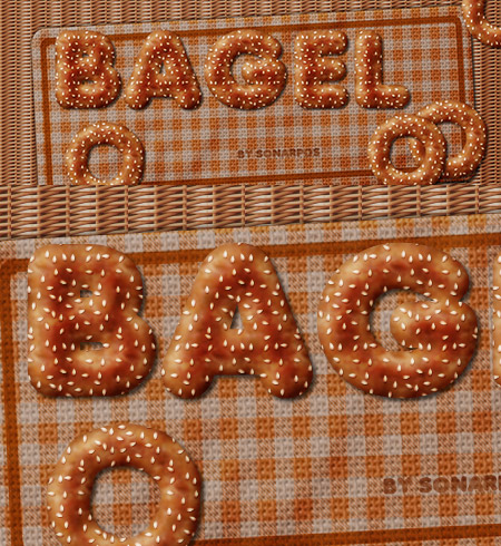 Интересный стиль для оформления надписей с эффектом бублика с кунжутом.