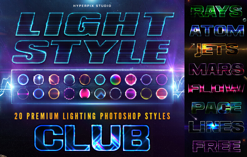 Классный набор неоновых и футуристических стилей для Photoshop, которые сделают ваши работы на тему фантастики и киберпанка яркими и эффектными.