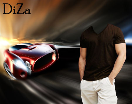 Мужской шаблон с парнем возле красного спортивного авто.