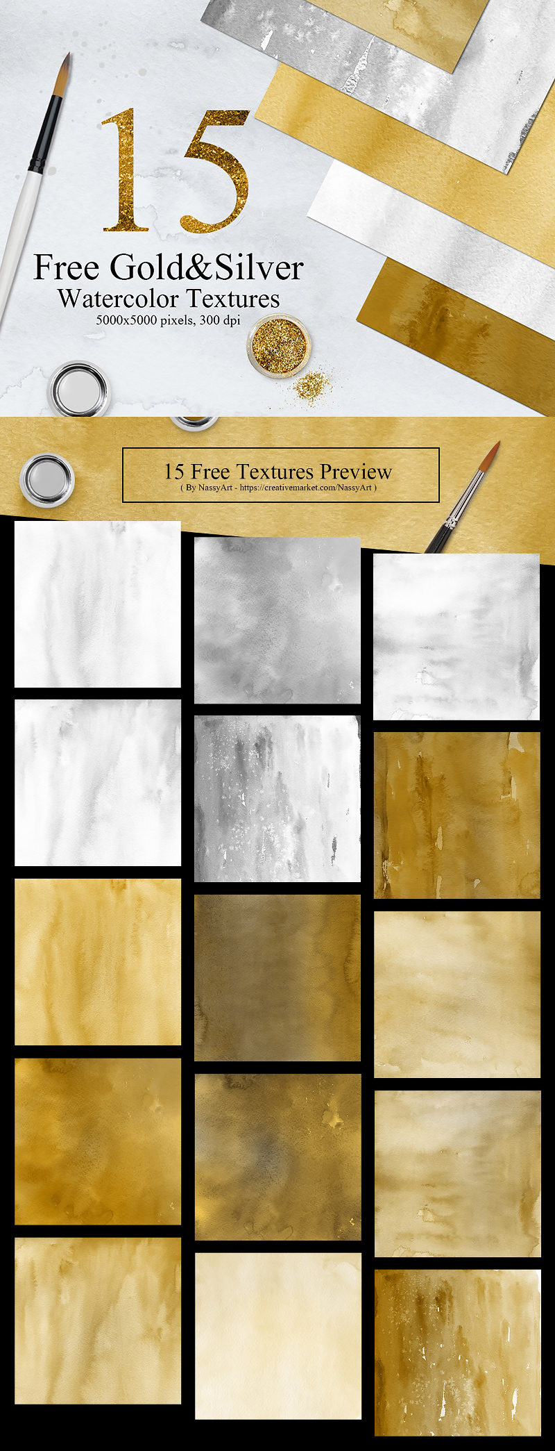 Интересный набор золотых и серебряных текстур в акварельном стиле.