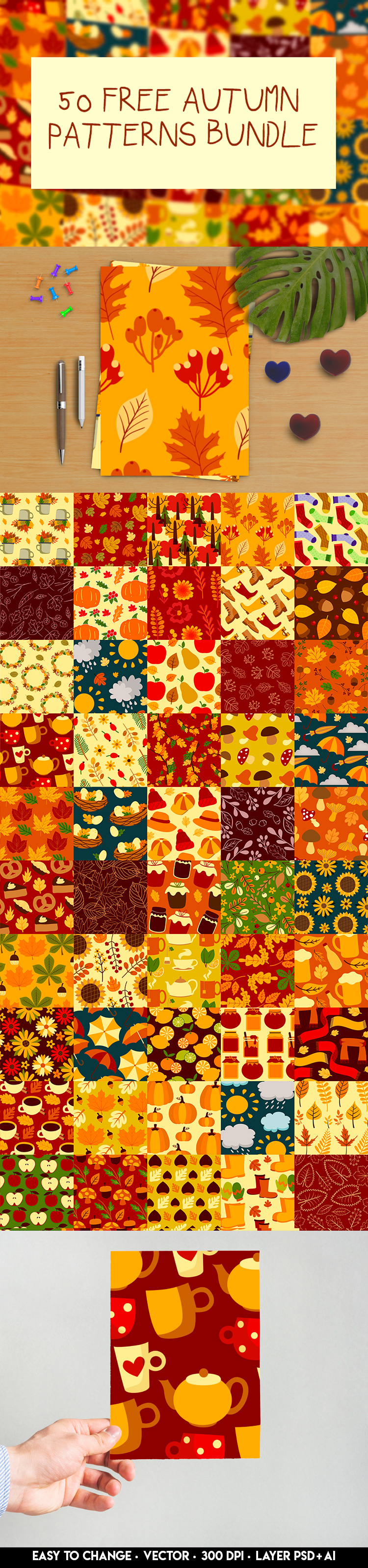 Набор из 50 осенних узоров для открыток, фонов и других оформительских работ.