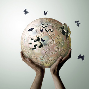 Теперь будем работать с растрированой копией 3D сферы. Выберите Lasso Tool (Лассо) на панели инструментов и сделать выделение вокруг одной части пазла (это может быть любая часть). Затем вырежете (Ctrl + X) и вставьте (Ctrl + V) кусок на новый слой, повторите этот шаг столько раз, сколько вам нужно.