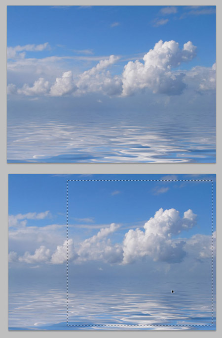 Шаг 5. Мы добавим отражающую текстуру нашей сфере, но сначала нам нужно создать текстуру, чтобы она была готова. Откройте изображение "Облака и вода". Мы будем редактировать это изображение для того, чтобы приготовить его для применения в качестве текстуры. Это необязательный шаг, вы можете пропустить его и перейти к шагу 8 и применить текстуру, которая у вас есть.