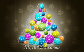 Наши Новогодние обои на рабочий стол со снежинками и красочными игрушками в форме елки готовы!