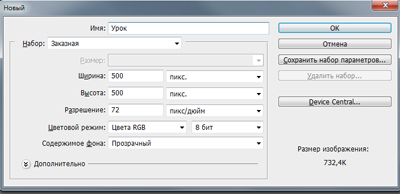 Шаг 1. Для начала создайте документ с размером 500*500 пикс.