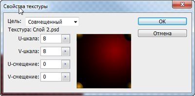 Примечание: По умолчанию в настройках стоит 1, что равняется трем текстурам вдоль стороны. Максимум можно поставит 10, тогда ваша текстура будет повторяться 30 раз, но для этого урока 10 мне показалось многовато, я остановился на 8, вы можете поставить любое значение которое вам понравится, изменить его можно всегда, просто вернувшись в это окно .Важно знать, что если вы не хотите что бы текстура не искажалась, то значения Uи Y шкал должны быть одинаковыми.