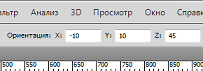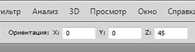 На верхней панели, введите в окно Ориентации значение шкалы Z: 45