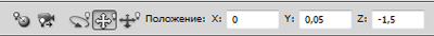 . Зажав ЛКМ, потяните курсов вверх. Или введите в окно положения значения: X: 0. Y:0,05 Z: -1,5