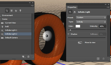 В Бесконечном свете 2 (Infinite Light 2) измените Интенсивность (Intensity) до 40% и снимите флажок с опции Тень (Shadow).