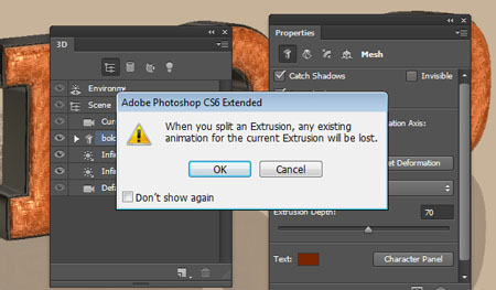 В появившемся окошке будет предупреждение о потере анимации для текущего объекта экструзии – жмите ОК.