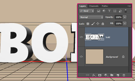 Теперь вы можете видеть, что текстовый слой преобразовался в 3D-слой.
