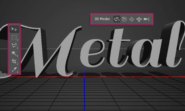 (V) (Перемещение) и, используя различные инструменты в 3D Modes (3D-режимах), измените текущий вид камеры так, чтобы она указывала на текст свыше.