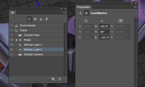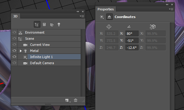 В 3D панели есть все компоненты 3D сцены, а при нажатии на название любого из них, вы сможете получить доступ к его настройкам в панели Properties (Свойства). Поэтому обязательно выберите имя элемента в 3D панели, который вы хотите изменить, до того, как вы измените его параметры на панели Properties (Свойства).