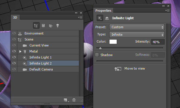 На 3D панели выберите Current View (Текущий вид), выберите инструмент Move Tool