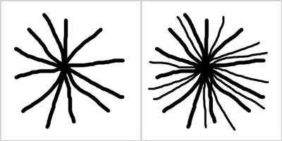 диаметром 10 пикселей рисуем «звездочку», уменьшаем размер кисти до 5 пикселей и дорисовываем «лучики».