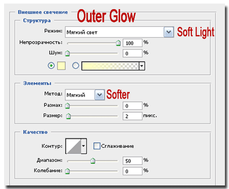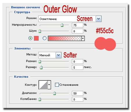 «Звезда»: меняем размер Внешнего свечения (Outer Glow) на 50 пикселей.