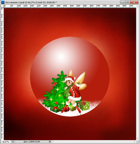 Затем я добавлю фею, и подарок (из скрап-набора), вы можете добавить любое другое изображение, будь то Снегурочка, Дед мороз или какая-то зверюшка. Затем удерживая клавишу CTRL, выделим эти слои в панели Слоев (Layes). Затем нажмем Ctrl + E, чтобы Объединить слои (Merge Down).