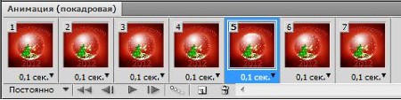 Ну и теперь осталось только из всего этого сделать анимацию. Для этого переходим Окно-> Анимация (Window-> Animation), затем нажимаем кнопочку Создание копии выделенных кадров (Duplicates selected frames) и делаем столько кадров сколько у вас слоев со снежинками.