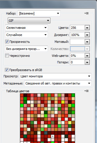 Когда вы закончите необходимо сохранить вашу работу в формате GIF, для этого переходим Файл-> Сохранить для Web устройств (File-> Save for WEB ) и выбираем нужный формат.