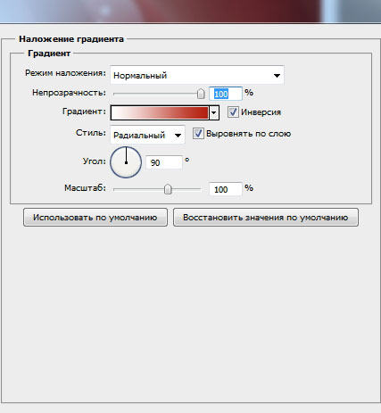 Не закрывая окно стилей слоя, сместите немного центр градиента.
