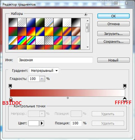 (Gradient Tool) щелкните в панели меню по окну градиента, для его редактирования и, поставьте цвета как на изображении ниже.