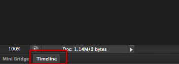 Теперь мы должны перейти на панель Timeline (Временная шкала). В Photoshop CS6 она находится в самой нижней части программы.