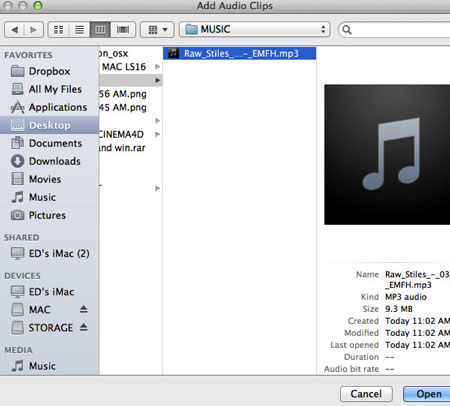 Выбираем аудиофайл и жмем Open (Открыть).