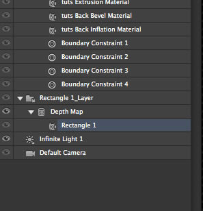 Теперь, если перейти на панель 3D, то мы увидим там объект "tuts" и новый прямоугольник.
