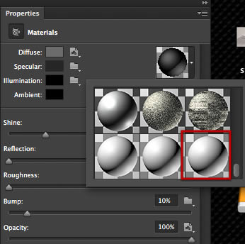 Переходим на панель свойств и выбираем простой гладкий материал, указанный ниже. Затем кликаем по цветовому индикатору рядом с Diffuse (Рассеивание), чтобы выбрать цвет.