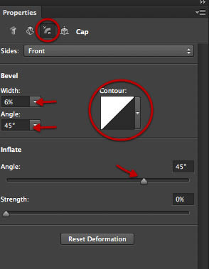Давайте немного модифицируем текст, чтобы сгладить его края. На 3D-панели выделяем текстовый объект, как показано ниже.