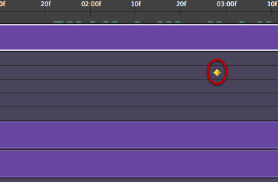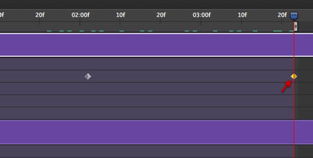 Теперь, когда мы установили конец нашей анимации, кликаем по маленькой иконке с секундомером. На активной линии появится желтый ромб. Это значит, что мы создали ключевой кадр.