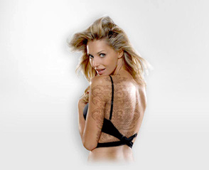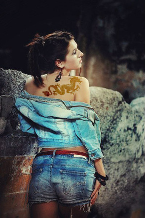 Выделите и объедините все слои с татуировкой. Создайте несколько дубликатов получившегося слоя. У одного из дубликатов сотрите весь узор, оставив небольшой участок вначале.