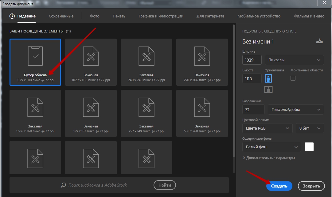 Нажимаем Ctrl + C (копировать), Ctrl + N (создать новый документ), в открывшемся окне выбираем Буфер обмена и нажимаем Создать.