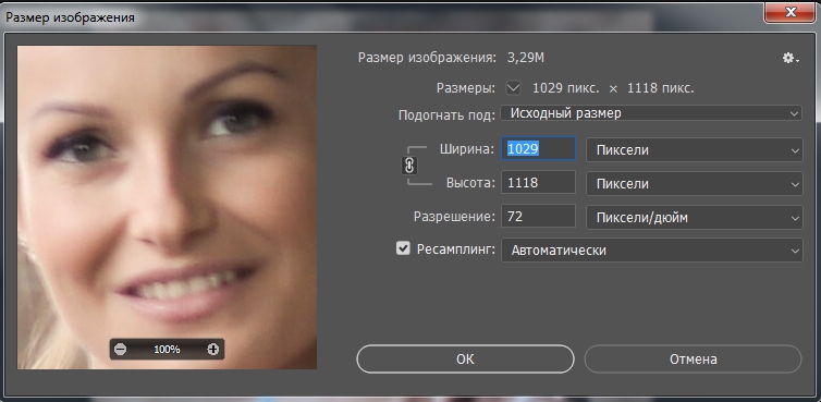 Заходим в меню Изображение – Размер изображения (Image – Image Size). Появляется такое окно, где вы можете изменить размеры фото.