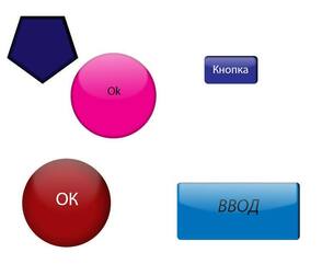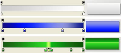 Градиент может быть как простой однотонный, так и комплексный из нескольких цветов. Управляя ползунками, вы можете добиться интересного блика на кнопке. Посмотрите на следующие примеры: