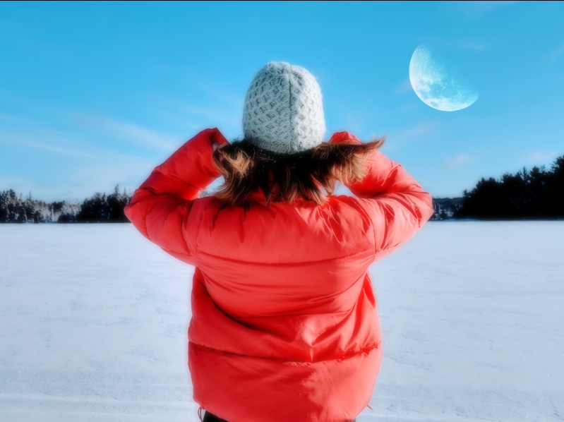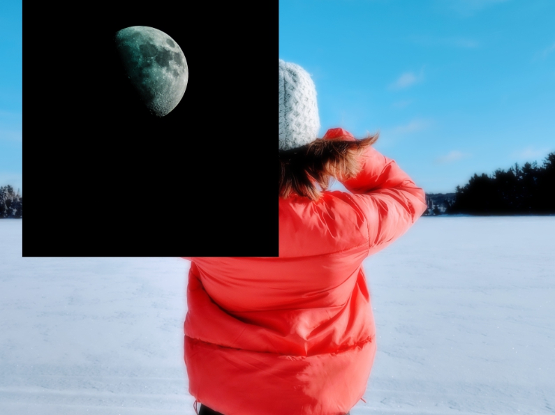 (Кисть) с прозрачностью 50% нарисуйте белое свечение непосредственно в центре светлой части луны.