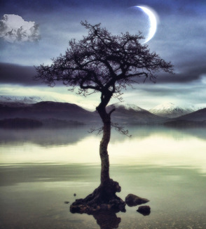 (Перемещение) перетащите изображение на слой с деревом. При помощи Free Transform (Свободная трансформация) уменьшите планету, поместите ее между ветками дерева и поверните, как показано на рисунке.