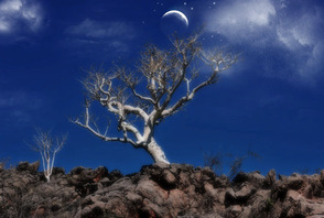 В этом уроке будем учиться делать коллаж белого дерева. Для работы нам понадобится: Планета: Дерево Облака Шаг 1. Итак, начнем с фона. Для начала откройте изображение с деревом. Шаг 2. Придадим эффект мягкого света. Сделайте копию слоя. Выполните команду Filter > Blur > Gaussian Blur (Фильтр - Размытие - Размытие по Гауссу) и размойте так, чтобы силуэт дерева просматривался. Шаг 3. Понизьте прозрачность слоя до 50%. У нас получился эффект мягкого света. Шаг 4. Откройте изображение с планетой и при помощи инструмента Move Tool Шаг 5. Измените Blending Mode (Режим наложения слоя) на Screen (Осветление) как показано на рисунке. Шаг 6. Добавим к нашему коллажу несколько облаков. Для этого откройте изображение с облаками, вырежьте их и вставьте в коллаж. Шаг 7. Далее поменяем цвет луны с синего на белый. Перейдите Image > Adjustments > Desaturate (Изображение – Коррекция – Обесцветить). Шаг 8. Инструментом Dodge Tool Шаг 9. Создайте новый слой и инструментом Brush Tool Шаг 10. Инструментом Smudge Tool Шаг 11. Нарисуйте на небе звездочки при помощи инструмента Кисть Шаг 12. Выполните команду Layer > Layer Style > Blending Options (Слой – Стиль слоя – Параметры наложения) и в параметре Outer Glow (Внешнее свечение) установите значения как на рисунке ниже. Шаг 13. Автор посчитал немного убрать пустой области с правой части изображения. Для этого выберите инструмент Crop Tool (Кадрировать) и обрежьте немного изображения справа. Шаг 14. Для дальнейших действий необходимо работу сохранить в формате jpg и открыть потом в Фотошоп. Перейдите Image > Adjustments > Brightness/Contrasts (Слой - Новый Корректирующий Слой - Яркость/Контраст) и установите параметры, показанные ниже. Шаг 15. Создайте копию слоя. Выполните команду Image > Adjustments > Shadow/Highlights (Слой - Новый Корректирующий Слой - Света/Тени) и установите следующие параметры. Шаг 16. Измените Blending Mode (Режим наложения слоя) на Color (Цветность) как показано на рисунке ниже. Далее объедините все слои Layer > Merge Down (Слой - Объединить слои). Шаг 17. Снова перейдите Image > Adjustments > Brightness/Contrasts (Слой - Новый Корректирующий Слой - Яркость/Контраст) и установите параметры, показанные ниже. Шаг 18. Инструментом Burn Tool Вот мы и закончили. Успехов в работе! Перевод: Гаврыш Екатеринаисходный урок