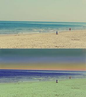 Настало время изменить цвет пляжа и воды. Вернёмся к слою с основным изображением. Используя инструмент Прямолинейное Лассо (Polygonal Lasso Tool), выделите сушу и воду.