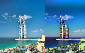 Вы хотите знать, как использовать PhotoShop, чтобы изменить время суток на фотографии и преобразовать его с солнечного дня в закат? Тогда этот урок будет интересен и полезен для Вас. В начале, Вы должны найти подходящую фотографию. Можете использовать данное изображение. Откройте изображения. Для начала увеличим контраст фотографии. Дублируем слой (Ctrl+J) и примените Фильтр>Размытие>Размытие по Гауссу, со следующими параметрами: Изменим режим наложения на Мягкий Свет прозрачностью 50 %. Результат должен быть следующим: Слейте два из этих слоев вместе. Используйте Инструмент Резкость Хорошо, теперь начнём изменять фон. Первоначально, мы должны изменить небо. Используйте Инструмент Прямолинейное Лассо Хорошо, мы уже сделали выделение, но Вы можете увидеть, что у нас есть некоторые не выделенные элементы. Что же нужно сделать? Держите Shift и когда у Вас рядом с указателем появиться знак "+", Вы можете добавить выделение. Хорошо, теперь дублируем выделенную область на новый слой (Ctrl+J) и применим Стиль слоя>Наложение Градиента. Заметили разницу? Настало время изменить цвет земли и водной основы. Вернёмся к слою с основным изображением. Используя Инструмент Многоугольное Лассо Помните, что в выделении нескольких участков Вам поможет клавиша Shift. Нажмите Ctrl+J, чтобы дублировать выделенную область на новый слой. Изображение>Коррекция>Цветовой тон/Насыщенность. Вот результат: Затемним немного фон, чтобы удалить появление дефектов на изображении. Используйте инструмент Затемнитель Последнее, что осталось сделать - изменить оттенок самого здания. Нужно перенести само здание на новый слой. Есть простой способ. Слейте все слои в один, кроме фонового, Выделение>Загрузить выделенную область, затем - Выделение>Инверсия, затем перейдите фоновый слой и нажмите Ctrl+J, чтобы дублировать выделенную область на новый слой. Примените к полученному слою наложение градиента. Вот результат этого шага: Выглядит хорошо, но незаконченно. Изображение>Коррекция>Яркость/Контрастность: Теперь лучше? Вот и всё! Переводчик: Лукша Юрий.исходный урок