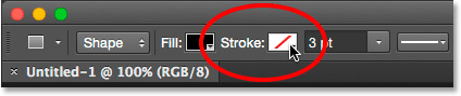 После добавления фигуре обводки, если я вернусь обратно и кликну по образцу цвета заливки на панели настроек, выбрав способ заливки «Нет цвета» (No Color), у меня останется только контур фигуры с обводкой. Внутри фигура станет пустой. Может показаться, что фигура заполнена белым цветом, но это только потому, что цвет заднего фона документа белый, что мы и видим в действительности.
